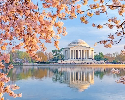 Jefferson Memorial In Cherry Blossom – NEW Paint By Number